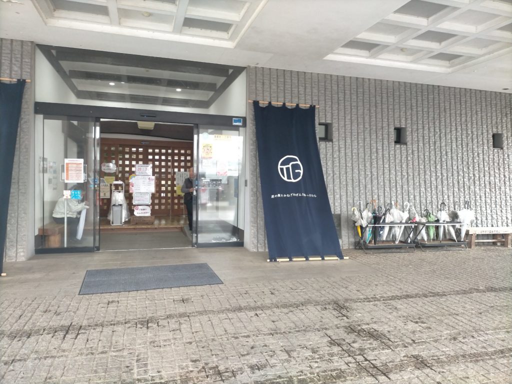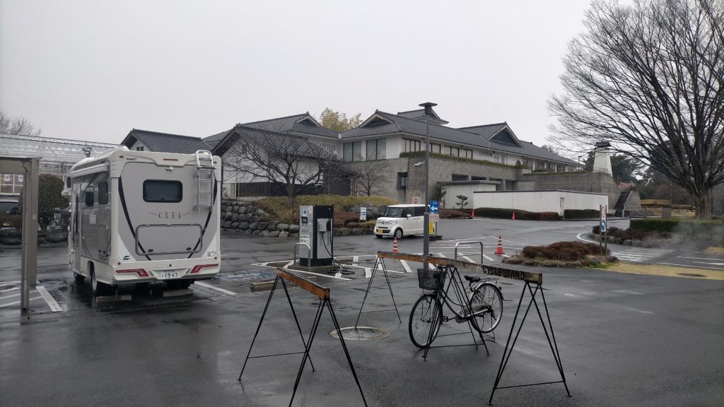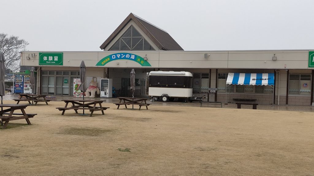 12:00着。トレーラーをベースとしたグランピング施設があるようです。施設中央には本館があり、温泉やお土産屋さんがあったようです。雨模様だったのでスルーしてしまいましたが、本館内はホームページでみるとかなり充実していたようです。 悪い癖で事前に調べずにいきあたりばったり。(残念)