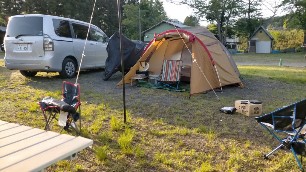 2024.5.3(金) 上小川キャンプ場に到着。 受付を済ませてテントを設置。