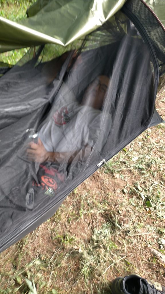 那須高原の散策で少し疲れたようです。 今夜はこのハンモックで寝るそうです。