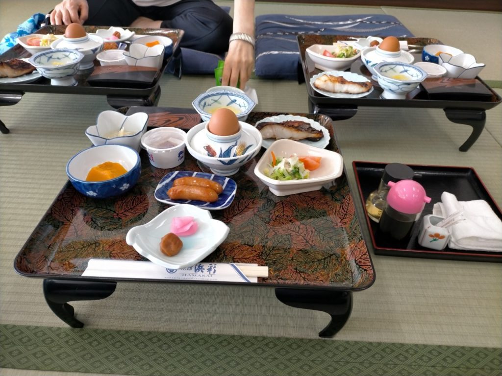 旅の宿「浜彩」さんから車で2分ほどのところにゴジラ岩があります。潮瀬崎(しおせざき)と呼ばれる磯場には多くの観光客が朝早くから訪れていました。