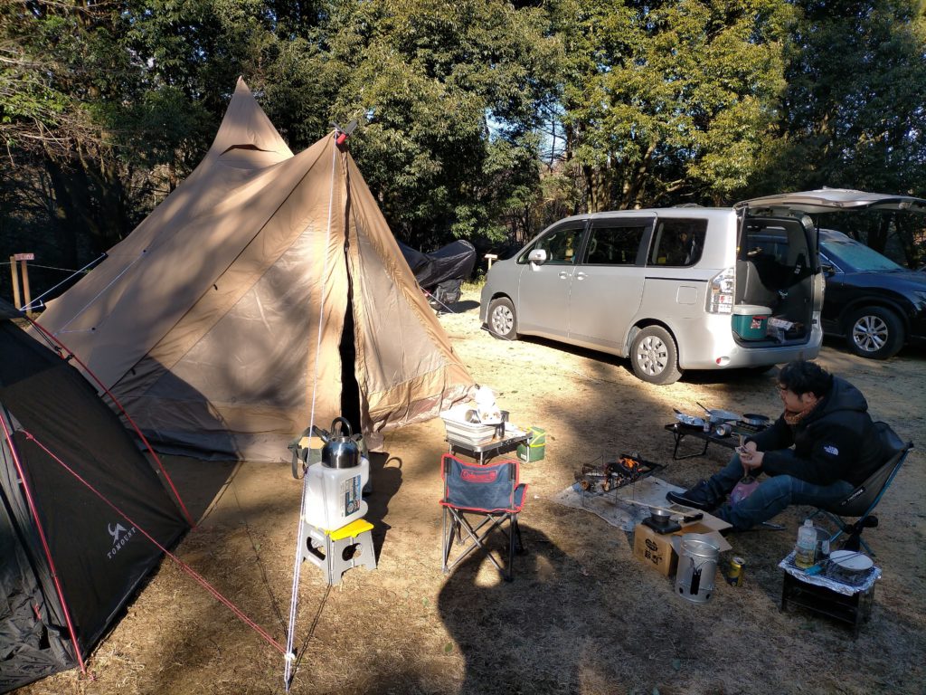 私は柏から、息子は宇都宮からと現地集合。場所は水戸インターを降りてから10分程度で、買い出しもスーパーやホームセンターも近場にあるので便利なキャンプ場でした。