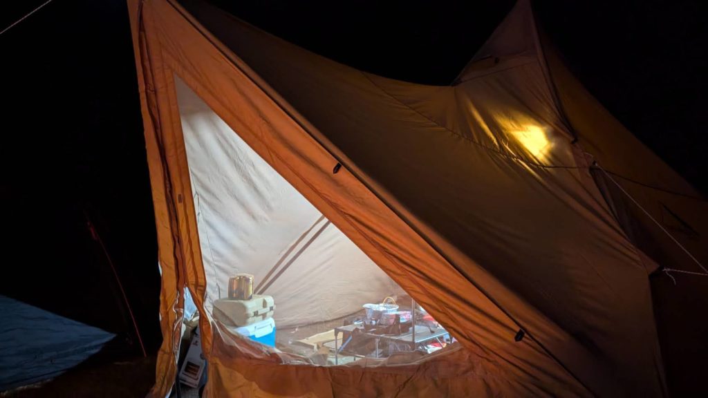 WAQの強力なランタンが充電できなくなったので、修理依頼すれば、かなり明るいサイト内になりそうです。