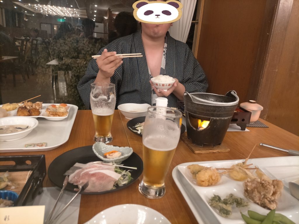 夕食は和風懐石と半バイキング。飲み放題つき。