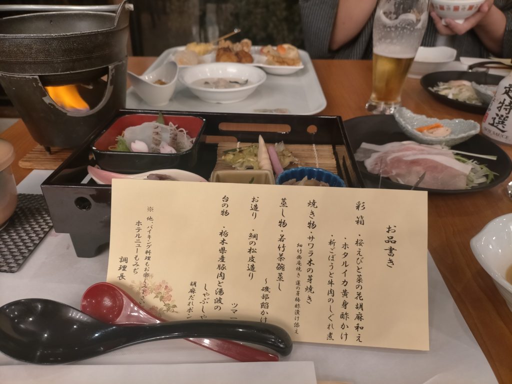 2025.4.5(土)那須塩原に小旅行。夕方に伊東園ホテルの空き状態をみたら1部屋の空きがあったので、急遽予約しました。念の為、夕食に間に合うかを確認し19:40から大丈夫との事。17:00に宇都宮を出発して19:00に到着。温泉♨でさっぱりして夕食。
