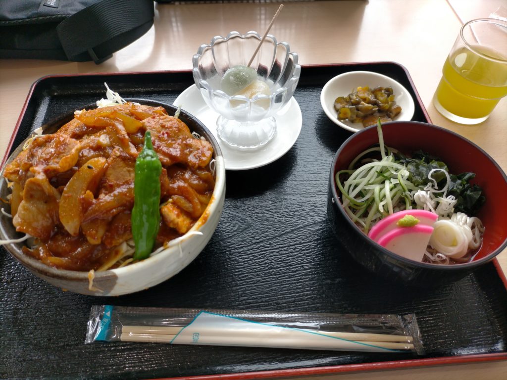 多古あじさい館から10.7km。スタンプブック完売。残念!12:00なので昼食。当駅のオススメが房総ポークの豚カツ定食。息子はこれを。私はスタミナ定食。ボリュームがあり満足です。あっ、こちらはサツマイモが名産です。