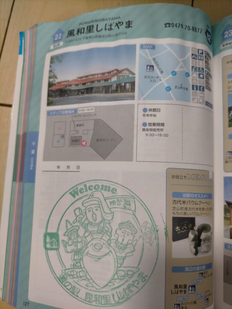 息子のスタンプブックが雨でビショビショになったのと、私も始めようと、スタンプブックを求めて、近場の道の駅からまわってみました。先ずは「風和里しばやま」に。