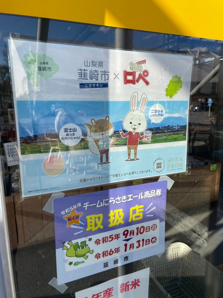 夕方になってきて山奥に向かっての道中です。こちらでお土産を購入。せっかくですので甲州ワイン(この道の駅のハウスワイン)を購入しました。 レジで購入すると販売の女性が「paypayで支払うと30%のポイントついてますよ」。 他も購入して1,000円程度のポイント還元がありました。山梨市がちょうど対象区域だったようです。 また、道の駅「みとみ」の前にはキャンプ場もありました。