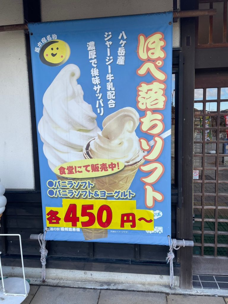 お土産屋さんでドーナツとおやき(野沢菜入り)を買って空腹をしのぎました。